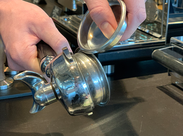 2. Entfernen Sie das Brühsieb, reinigen Sie sowohl das Brühsieb als auch den Siebträger und setzen Sie das Brühsieb wieder ein.