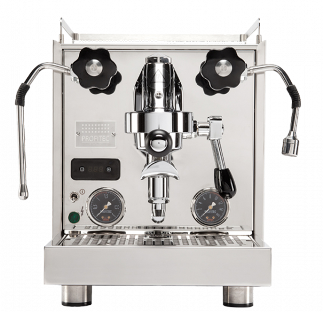 Die PRO 600 ist eine Dualboiler-Espressomaschine mit PID-Display, die optional auch als Einkreismaschine verwendet werden kann. Durch den PID-Regler können die Temperaturen in beiden Kesseln individuell eingestellt werden. Das hochwertige Edelstahlgehäuse mit farbigen Seitenelementen und die auffällig geformten Dampf- und Heißwasserlanzen verleihen der PRO 600 einen besonders extravaganten Look.