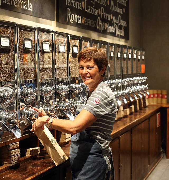 Hereinspaziert in unseren Bohnenladen im Haupthaus von DINZLER am Irschenberg. Hier, direkt neben der offenen Kaffeerösterei in der es herrlich duftet, finden Sie eine laufend wechselnde Auswahl an kleinen Geschenken, an besonderem Geschirr, an Praktischem und und Schönem, das man vielleicht nicht unbedingt braucht. Neben diesen Besonderheiten erhalten Sie unser gesamtes Kaffee- und Espressosortiment in unterschiedlichen Größen frisch verpackt sowie Schokolade und Feinkost. Wir beraten Sie gerne!